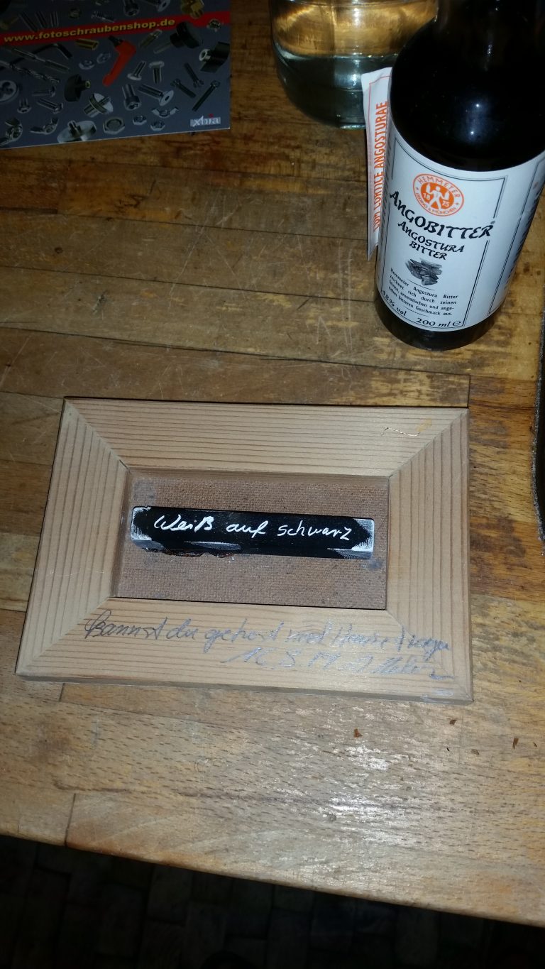 Es ist geschwärzte Schulkreide, auf der Schwarz auf weiß eingraviert ist. Aufgepasst, es ist weiße Schrift auf schwarzem Grund.