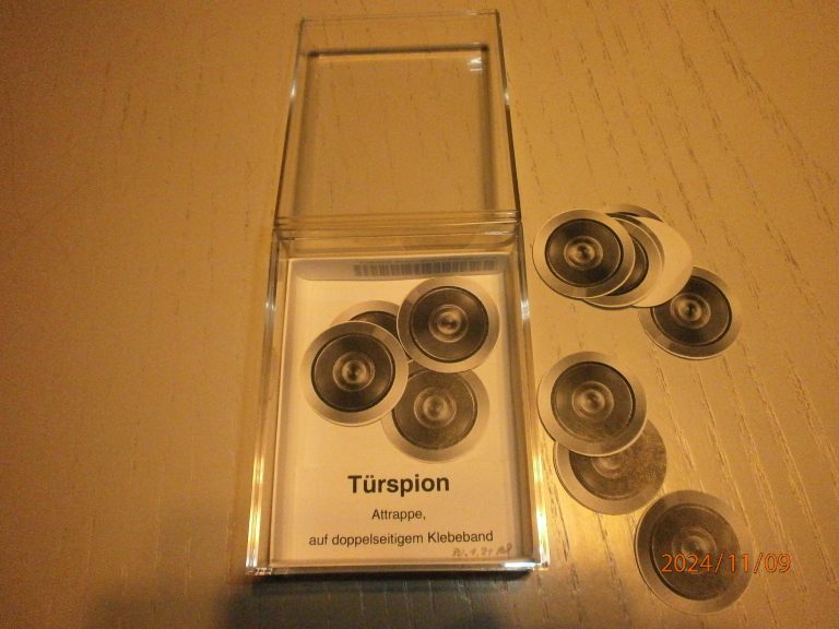 Foto vom Türspion auf doppelseitigem Klebeband. Zum Nachdenken