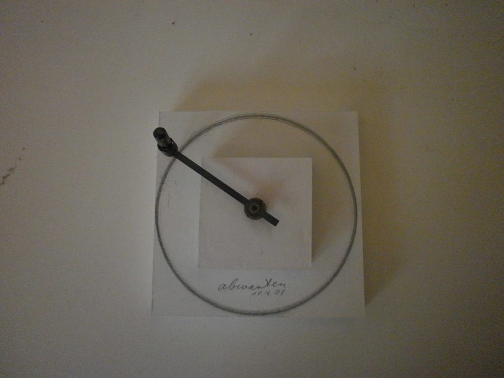 Uhrwerk mit am Zeiger befestigten Bleistift, Batterie rein, abwarten. Wolfgang gehört zu meinen Freunden, die das Attribut abwarten leben.